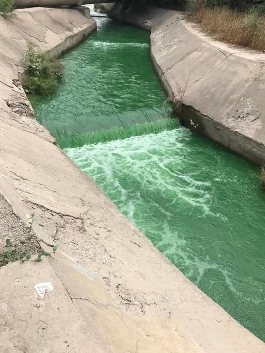 Сегодня между ул. Жандосова и пр. Абая в реке Каргалы зафиксировано изменение цвета воды. Предположительно, с моста в русло могло быть сброшено зеленое химическое вещество.